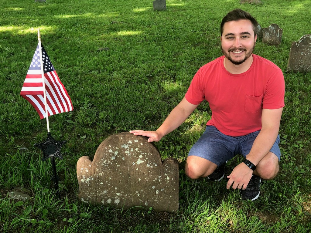 We spent about 30 minutes roaming the cemetery and found many gravestones that were perceived to be in some way related to Kevin. After some further comparisons to a photo that he had saved on ancestry.com, we were actually able to find his seventh great grandfather, Captain Caleb Cone’s, worn tombstone. It being Memorial Day weekend, it was touching to see that the town had placed American flags next to the graves of those who had served. For just going out on a whim, our trip to Connecticut will now forever be memorable.